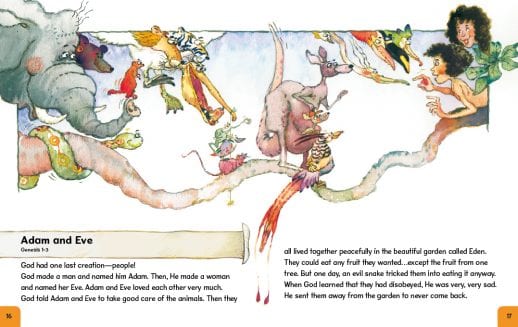 Each Bible story is accompanied by activities such as word searches, puzzles, crosswords and other entertaining and challenging games. Beautiful color illustrations visualize the story of God’s love from the beginning with Adam and Eve to King David to Jonah and on to the life, death, and resurrection of Jesus.