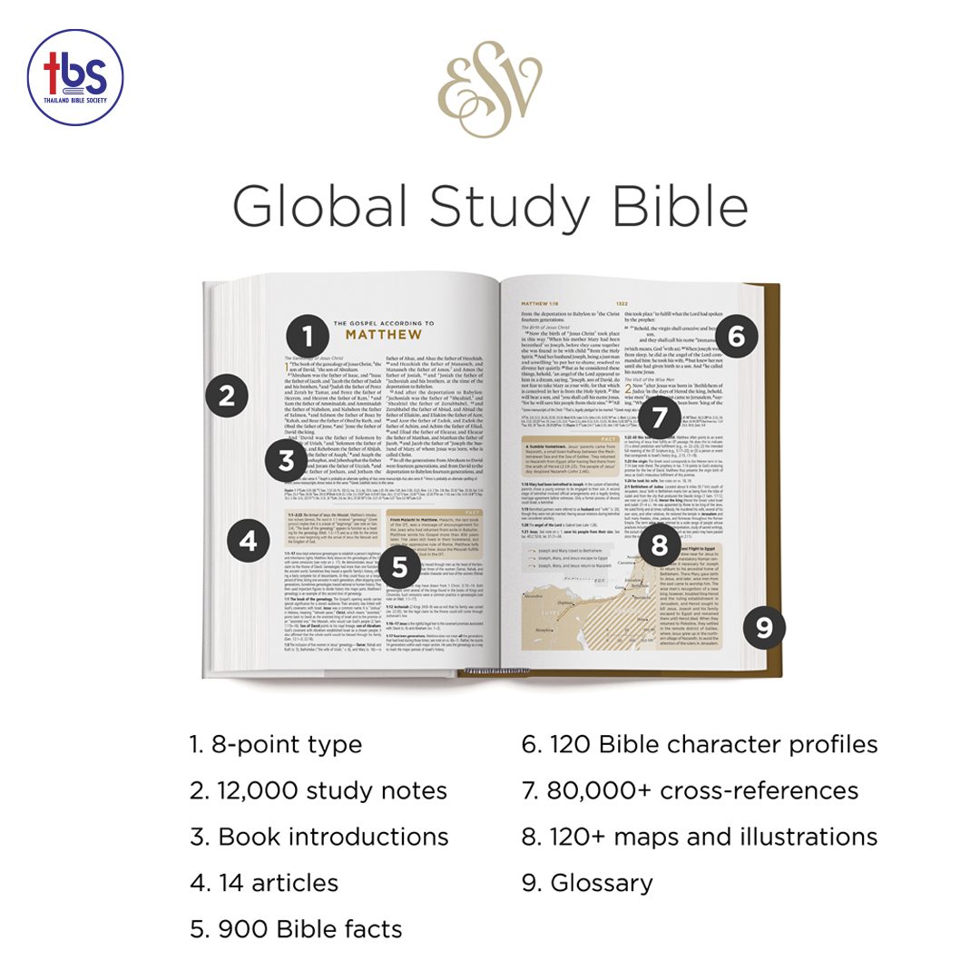 The ESV Global Study Bible is a one-volume study resource for globally minded Christians everywhere. It has been designed from beginning to end to be highly accessible and priced for distribution on a global scale. Each book of the Bible begins with an introduction, followed by a unique, insightful description of the overarching message of the book. The Bible also features a set of articles by Christian leaders around the world who apply the Bible to global issues, such as the role of government, the nature of the church, world religions, social ethics, and missions and evangelism. The notes and maps were adapted from the best-selling ESV Study Bible and contain a wealth of information about the biblical text, history, and geography. The ESV Global Study Bible is an outstanding resource at an extremely affordable price for Christians everywhere who seek to know and understand the Bible and how to apply it in a global context.